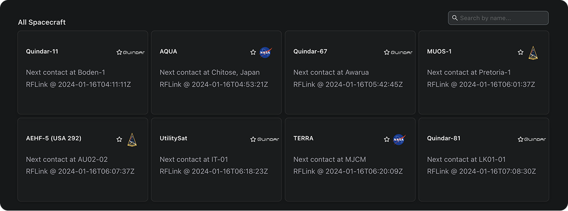 Control multiple satellite types in a single interface allowing for legacy fleet migration and next-gen payload support. Track spacecraft, reserve contacts, automate tasking, and intelligently respond to ground and space incidents with Quindar Mission Management.