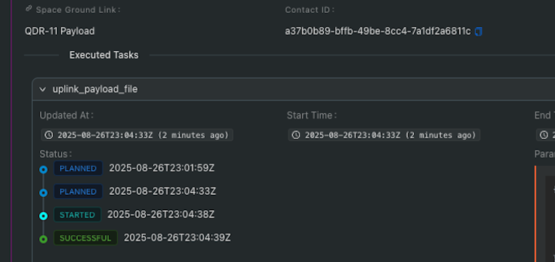 Quindar Portal empowers payload operators to directly task, monitor, and analyze their payloads in real-time. With scoped controls and shared mission context, it keeps manufacturers, operators, and end users aligned — enabling secure operations from mission control to in the theater.