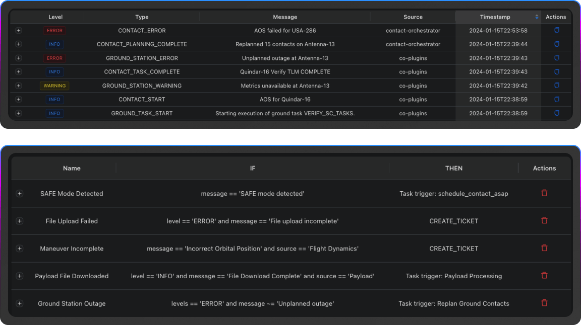 Quindar brings planning, flight dynamics, command and control, event management, and payload access into one integrated system. No more stitching together tools or juggling workflows—just a single platform designed for autonomous, scalable satellite operations.
